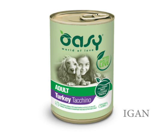 Ai nevoie de o hrană naturală și echilibrată pentru câinele tău adult? Oasy Paté cu carne de curcan 400 g este o hrană completă super premium, formulată special pentru câini adulți de toate rasele, începând cu vârsta de un an. Conține 26% carne de curcan, completată de carne de pui și vită, furnizând proteine de înaltă calitate pentru vitalitate și sănătate optimă.