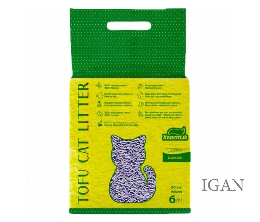 Așternut vegetal pentru pisici Хвостик Tofu cu aromă de lavandă, 6 L (3 kg)