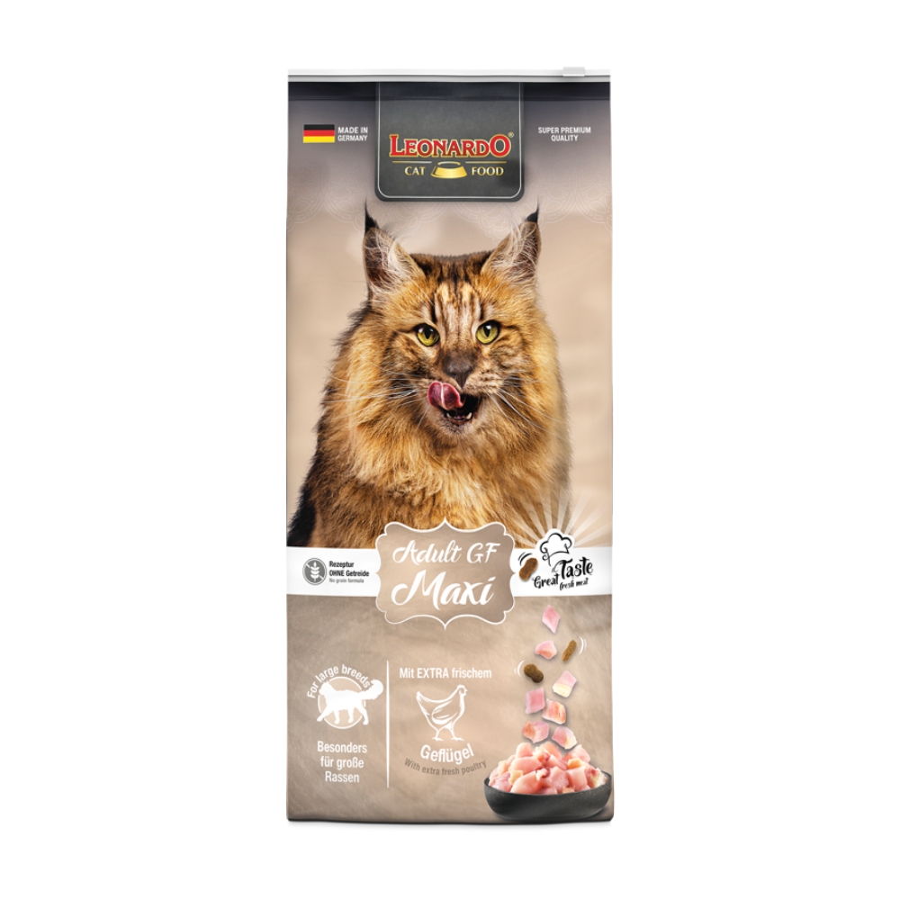 Descoperă LEONARDO® GF Maxi, o hrană super premium produsă în Germania de compania BEWITAL, concepută pentru rasele de pisici mari, precum Maine Coon sau pisica norvegiană de pădure.